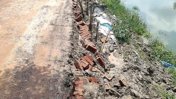 মুরাদনগরে পুকুরে গিলে খাচ্ছে এলজিইডি সড়ক