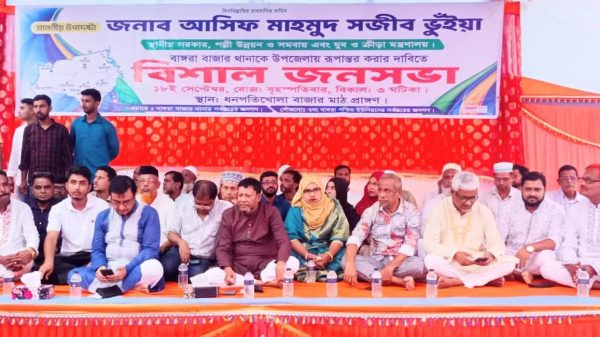 কুমিল্লার বাঙ্গরা বাজার থানাকে উপজেলা বাস্তবায়নের দাবিতে বিশাল সমাবেশে কুমিল্লার মুরাদনগর উপজেলার বাঙ্গরা বাজার থানাকে উপজেলা বাস্তবায়নের দাবিতে ৭নং বাঙ্গরা পশ্চিম ইউনিয়নের আয়োজনে সমাবেশ করা হয়েছে। বৃহস্পতিবার (১৮ সেপ্টেম্বর) বিকেলে