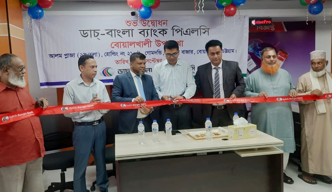 চট্টগ্রাম জেলার বোয়ালখালী উপজেলাতে ডাচ্-বাংলা ব্যাংকের উপশাখার উদ্বোধন হয়। গত মঙ্গলবার (৩০ সেপ্টেম্বর) সকালে উপজেলার গোমদন্ডী ফুলতল আলম প্লাজায় উদ্বোধনে প্রধান অতিথি ছিলেন বোয়ালখালী উপজেলা নির্বাহী অফিসার মোহাম্মদ রহমত উল্লাহ,প্রধান বক্তৃা ছিলেন আগ্রাবাদ ব্রাঞ্চের ব্রাঞ্চ ম্যানেজার বাবু রনজন বড়ুয়া,বিশেষ বক্তা মীর হোসেন চৌধুরী,এস এ ভি পি এন্ড ম্যানেজার,বোয়ালখালী উপশাখার ম্যানেজার মোহাম্মদ ইকরামুল ইসলাম এর সঞ্চালনায় ও মুনাজাত পরিচালনা করেন মৌলানা আলী আকবর রিজভী প্রমুখ।আনুষ্ঠানিক ভাবে ব্যাংকের এ শাখার উদ্বোধন করেন। নতুন শাখার সুষ্ঠু পরিচালনা এবং দেশের অগ্রগতি ও ব্যবসা-বাণিজ্যের সমৃদ্ধির জন্য মহান আল্লাহর অশেষ রহমত কামনা করে দোয়া মাহফিলের মাধ্যমে উদ্বোধন অনুষ্ঠানের কার্যক্রম শুরু করা হয়। উদ্বোধন দিন থেকেই ডাচ্-বাংলা ব্যাংকের অন্যান্য শাখার মতো এ শাখায়ও অনলাইন ব্যাংকিং, এটিএম ও সিআরএম সার্ভিস, রিটেল, এসএমই এবং করপোরেট লোন, ক্রেডিট কার্ড, এজেন্ট ব্যাংকিং, মোবাইল ব্যাংকিং এবং রেমিট্যান্স সার্ভিস প্রদান করছে। এ সময় স্থানীয় গণ্যমান্য ব্যক্তিবর্গরা উপস্থিত ছিলেন।