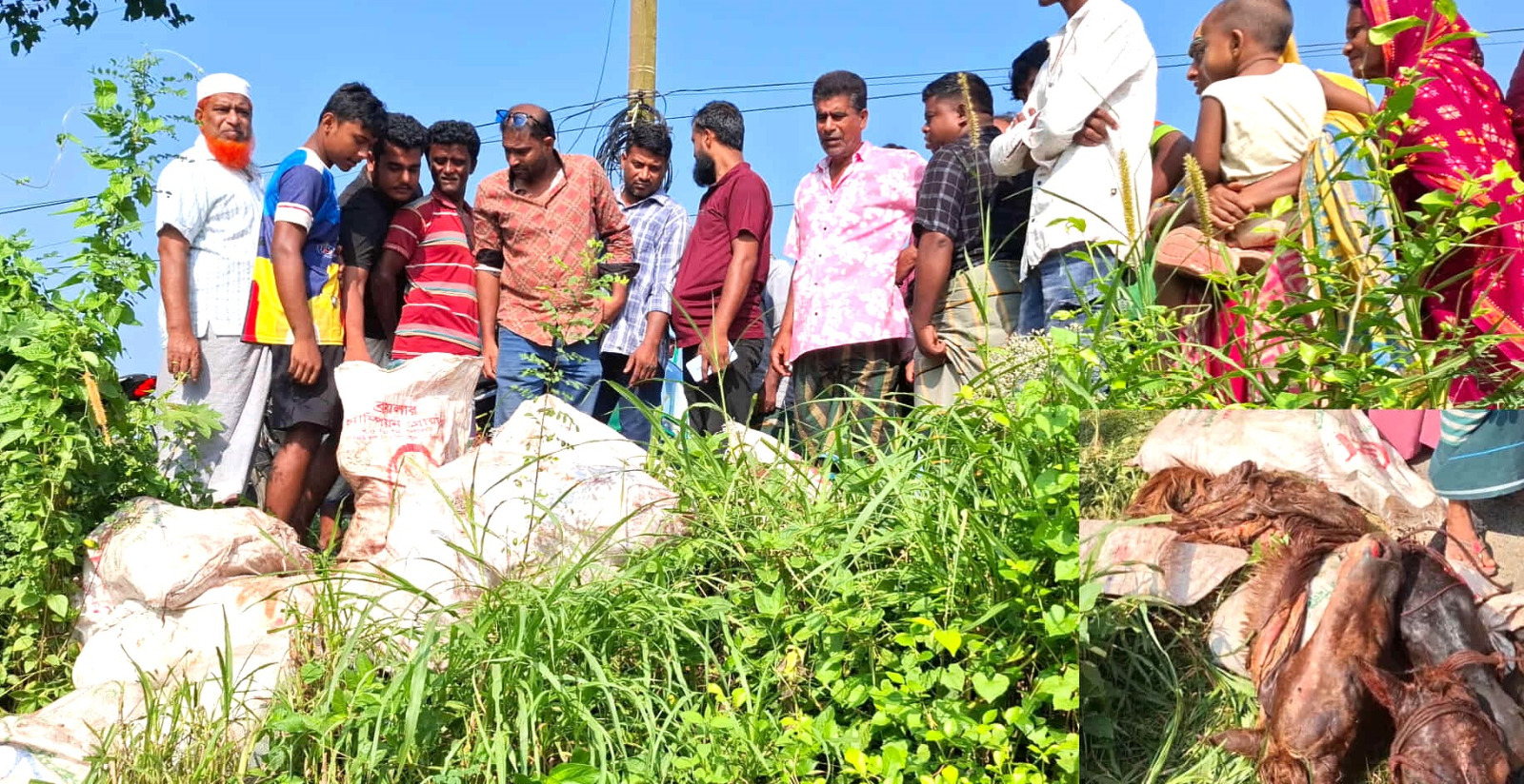 স্থানীয়দের ধারণা- ঘোড়ার মাংস গুলো গরুর মাংস হিসেবে বিক্রির উদ্দেশ্যে র্দুবৃত্তরা এ ঘটনা ঘটিয়েছে এবং ভোর হয়ে যাওয়ার কারনে এই উচ্ছিষ্ট (মাথা, চামড়া, ভুঁড়ি, হাড়) গুলো ফেলে গেছে।
