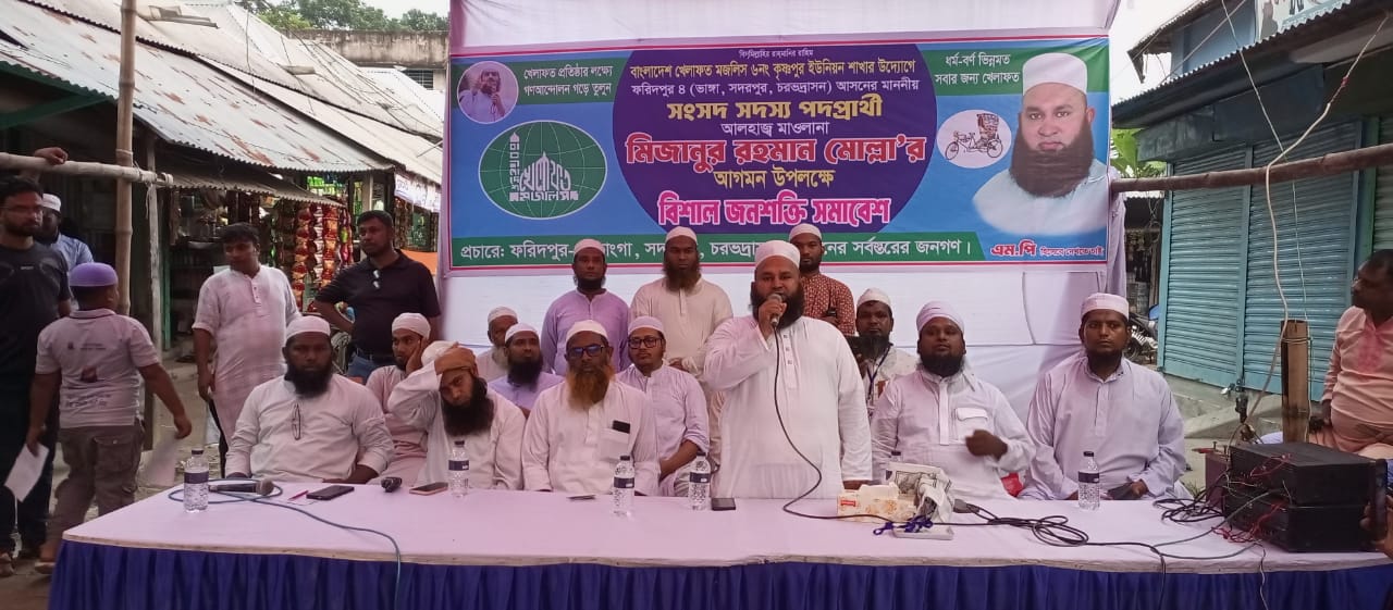শুক্রবার বিকেলে সদরপুর উপজেলার কৃষ্ণপুর ইউনিয়নের বাড়ৈরহাটে বাংলাদেশ খেলাফত মজলিস কৃষ্ণপুর ইউনিয়ন শাখার উদ্যোগে আয়োজিত জনশক্তি সমাবেশে প্রধান অতিথির বক্তব্যে তিনি এসব কথা বলেন।