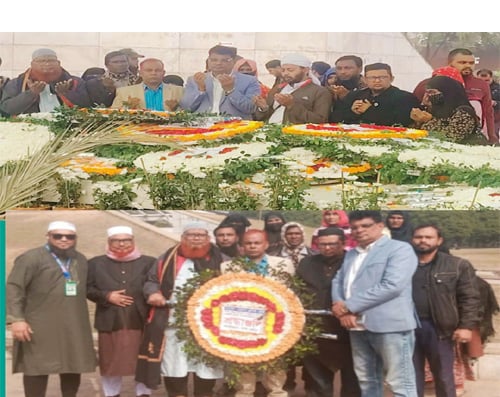 অধিকার ডেভেলপমেন্ট সোসাইটি ঢাকা জেলা শাখার সহ-সভাপতি মোঃ ইউনুস আলী, বাংলাদেশ ন্যাশনাল নিউজ ক্লাবের সাংবাদিক জাহাঙ্গীর আলম রাজু,বাংলাদেশ সেন্ট্রাল প্রেস ক্লাবের সহ-সভাপতি মোঃ শফিকুর রহমান, এ এম নওশাদ এহসান, কোহিনুর বেগম, মোঃ রফিকুল ইসলাম,আব্দুল আজিজ, আলমগীর হোসেন, মোঃ আব্দুর রহমান,মাহমুদা আক্তার, সেলিনা আক্তার,শিল্পী বেগম, মোঃ রঞ্জু, টিপুসহ বিভিন্ন সাংবাদিক ও সংগঠনের নেতৃবৃন্দ। শ্রদ্ধা নিবেদন শেষে সংক্ষিপ্ত বক্তব্যে নেতৃবৃন্দ আরো বলেন, বেগম খালেদা জিয়ার মৃত্যুতে দেশের রাজনীতি ও গণতন্ত্র যে ক্ষতির মুখে পড়েছে, তা অপূরণীয়। তিনি নিজের জীবনকে ঝুঁকির মুখে ফেলে গণতন্ত্র রক্ষা ও মানুষের জন্য কাজ করেছেন। তার দেখানো পথে তার উত্তরসূরিরা অবশ্যই চলবে । তার রাজনৈতিক প্রজ্ঞা, সাহস ও ত্যাগ জাতি চিরদিন শ্রদ্ধার সঙ্গে স্মরণ করবে।পরিশেষে শহীদ রাষ্ট্রপতি জিয়াউর রহমান ও মরহুমা বেগম খালেদা জিয়ার রুহের মাগফিরাত কামনা করে বিশেষ দোয়া ও মোনাজাতের মাধ্যমে কর্মসূচির সমাপ্তি ঘটে।