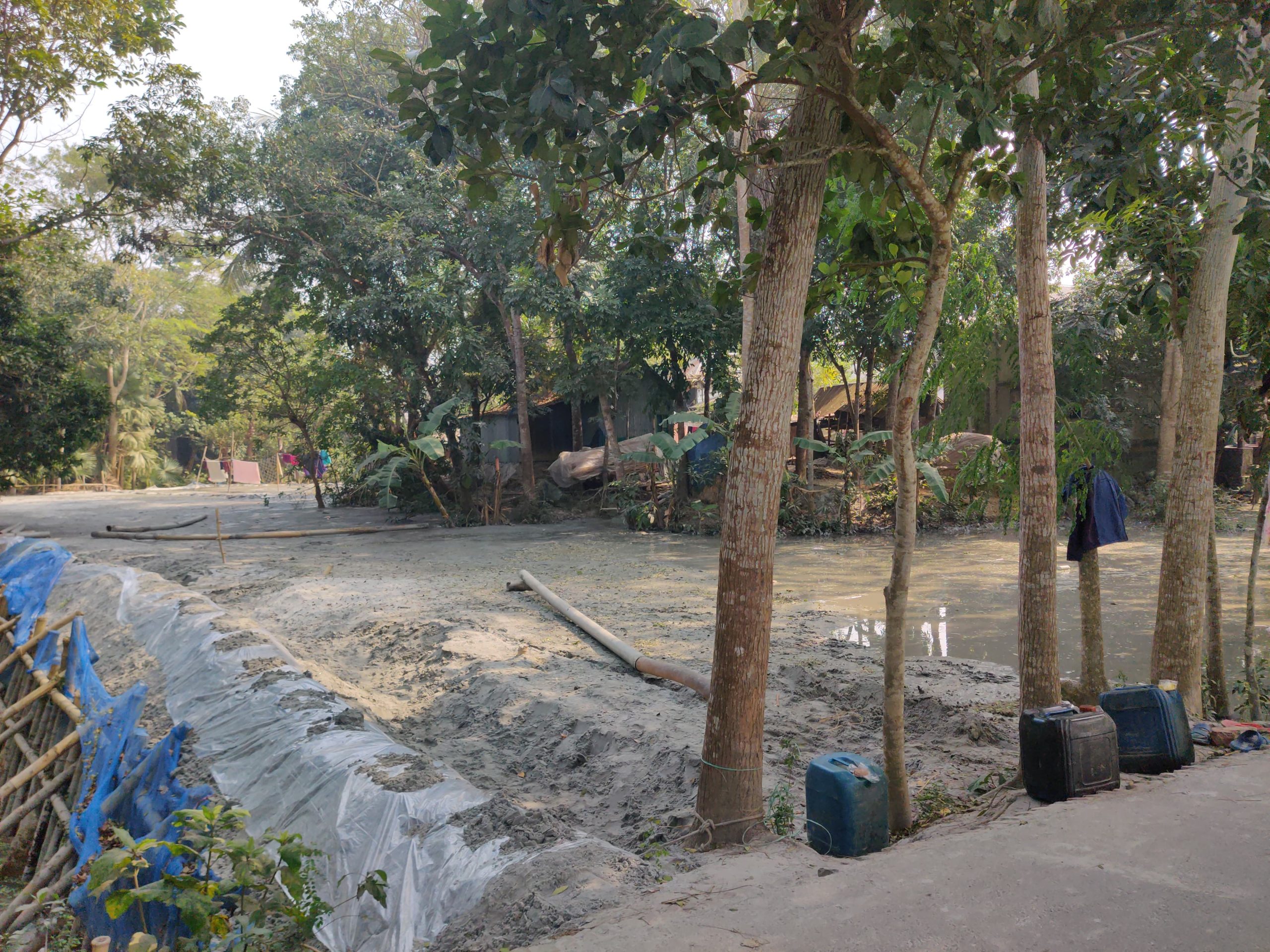মধ্য কাইচাইল আলী মিয়ার বাড়ির সামনে সড়কের পাশে বালু দিয়ে পুকুর ভরাটের কাজ চলছে।
