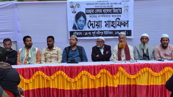 কুমিল্লার মুরাদনগরে সাবেক তিন বারের প্রধানমন্ত্রী বেগম খালেদা জিয়ার রুহের মাগফিরাত কামনায় দোয়া মাহফিল অনুষ্ঠিত হয়েছে। বুধবার (১৪ জানুয়ারি) বিকেলে মুরাদনগর উপজেলার ১৪ নং নবীপুর পূর্ব ইউনিয়নের ২ নম্বর ওয়ার্ডে ...বিস্তারিত পড়ুন