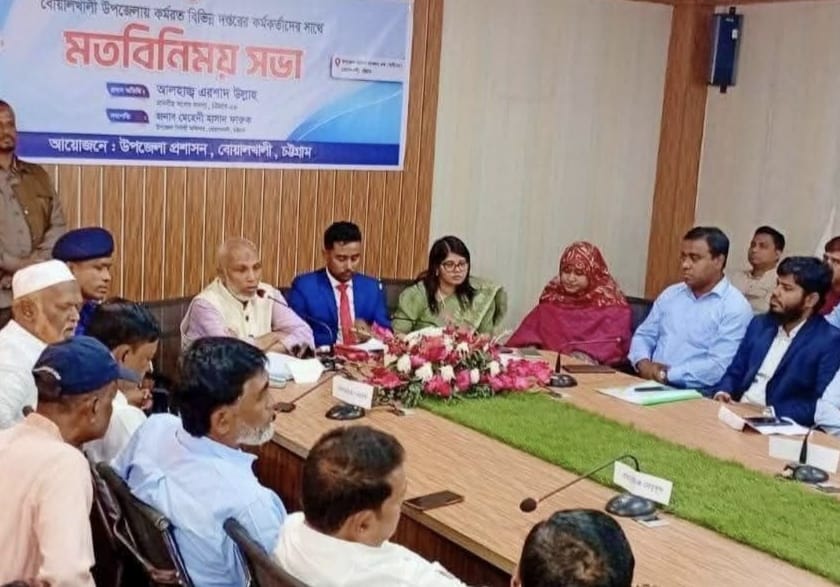 উপজেলা প্রশাসনের উদ্যোগে উপজেলা নির্বাহী কর্মকর্তা (ইউএনও) মেহেদী হাসান ফারুক এর সভাপতিত্বে অনুষ্ঠিত সভায় বক্তব্য রাখেন সহকারী কমিশনার (ভূমি) কানিজ ফাতেমা,উপজেলা স্বাস্থ্য ও পরিবার পরিকল্পনা কর্মকর্তা জাফরিন জাহেদ জিতি, বোয়ালখালী থানার ভারপ্রাপ্ত কর্মকর্তা মোঃ মাহফুজুর রহমান,প্রাণিসম্পদ কর্মকর্তা ডা.রুমন তালুকদার, উপজেলা প্রকৌশলী রনি সাহা,জেলা বিএনপির সিনিয়র যুগ্ম আহ্বায়ক আজিজুল হক চেয়ারম্যান, সদস্য শওকত আলম,উপজেলা বিএনপির সাবেক আহ্বায়ক মো.ইসহাক চৌধুরী,সাবেক সিনিয়র যুগ্ম আহ্বায়ক নুরুন্নবী চৌধুরী, সাবেক সদস্য সচিব হামিদুল হক মান্নান,পৌর বিএনপির সাবেক আহ্বায়ক শহীদুল্লাহ চৌধুরী,জেলা শ্রমিক দলের সাধারণ সম্পাদক মুক্তিযুদ্ধ মহসিন খান তরুণ,জেলা যুব দলের সাধারণ সম্পাদক মোঃআজগর বিভিন্ন গণমাধ্যম কর্মীরা সহ সরকারি বিভিন্ন দপ্তরের প্রশাসনিক কর্মকর্তারা উপস্থিত ছিলেন।