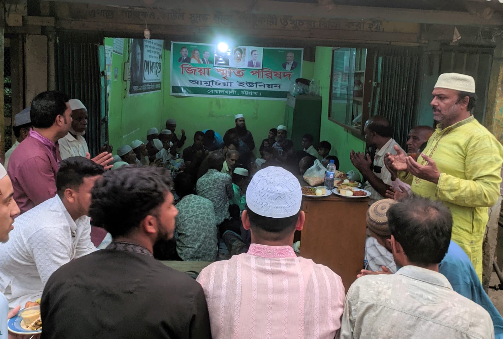 বোয়ালখালী উপজেলাধীন আমুচিয়া ইউনিয়ন বিএনপির দোয়া ও ইফতার মাহফিল গত শুক্রবার (১৩ মার্চ )বাদে আছর কালাইয়ার হাটস্হ জিয়া স্মৃতি পরিষদ কার্যালয়ে বোয়ালখালী উপজেলা বিএনপির সাবেক যুগ্ন আহবায়ক জয়নাল আবেদীন সিকদারের সভাপতিত্বে অনুষ্ঠিত হয়। অতিথি হিসেবে উপস্থিত ছিলেন ইউনিয়ন বিএনপির সাবেক সভাপতি আবুল মনচুর চৌধুরী, ইউনিয়ন বিএনপির সাবেক সাধারণ সম্পাদক রেজাউল করিম মেম্বার,উপজেলা বিএনপির সাবেক যুগ্ন সাধারণ সম্পাদক সাংবাদিক এম এ মন্নান, ইউনিয়ন বিএনপি নেতা ইস্কান্দার চৌধুরী মিয়া, শফিউল আলম মাঝি,নজির আলম,নুরুর জমা, ইউনিয়ন যুবদলের সভাপতি মোঃ সেলিম,সাধারণ সম্পাদক সোলাইমান সিকদার, যুবদল নেতা ইমন উদ্দিন বাদশা,ইমরান চৌধুরী, মুরশেদ,সেলিম,ইউনিয়ন কৃষক দলের সদস্য সচিব খোরশেদ আলম, ছাত্রদল নেতা আকিব,জনি,মিনহাজ সহ বিপুল সংখ্যক নেতাকর্মীরা উপস্থিত ছিলেন।